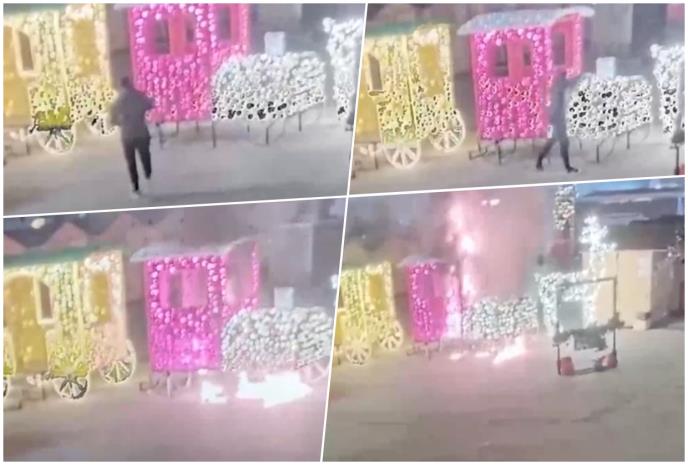 Deo novogodišnje dekoracije, postavljene u susret predstojećim praznicima, uništen je u Novom Sadu nakon što je nepoznati muškarac podmetnuo vatru.