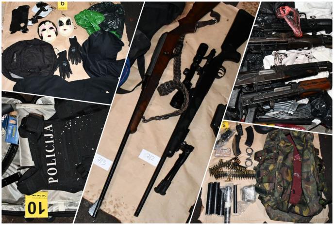 Policija je prilikom ove opsežne akcije, pretresom stana i drugih prostorija i garažnog prostora zaplenila je dve modifikovane - improvizovane eksplozivne naprave sa daljinskim aktiviranjem i pratećom opremom, puškomintraljez, snajpersku pušku, pet automatskih pušaka, tri automatska pištolja – hekler, uzi i škorpion, dva poluautomatska pištolja, revolver, protivpešadijsku minu usmerenog dejstva, lovačku karabinsku pušku, pet prigušivača za automatsko oružje, nekoliko stotine komada municije različitog kalibra, dva pancirna prsluka sa oznakama "Policija", sredstva za vezivanje – lisice, više komada opasača i futrola za vatreno oružje, improvizovanu službenu legitimaciju MUP-a Srbije, ručne radio stanice za komunikaciju i više maski za sakrivanje lica.