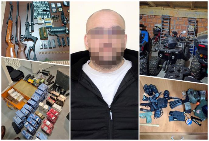 Pretresom prostorija i vozila koje je osumnjičeni koristio, policija je pronašla opremu za davanje zvučne signalizacije u vozilu, više legitimacija i znački različitih policijskih sindikata i udruženja, kao i više komada različite municije, delova oružja, vazdušno oružje, uređaj za svetlosnu signalizaciju „blinker“, četiri motocikla „Quad“, mobilne telefone i različitu dokumentaciju.