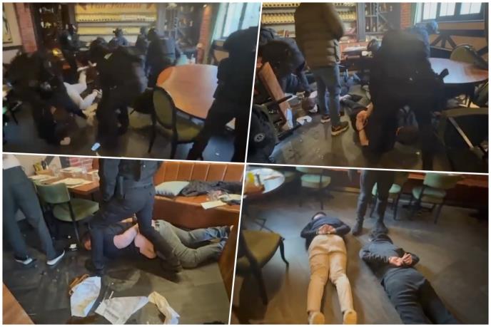 Policija je danas, kako se vidi na snimku, upala u poznati restoran i naočigled gostiju uhapsila nekoliko osumnjičenih koji su sedeli za stolom i ručali.