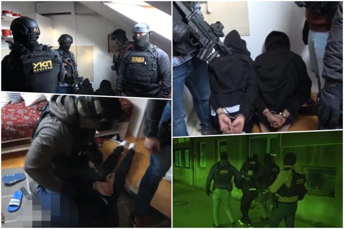 „Pripadnici Ministarstva unutrašnjih poslova, Uprave kriminalističke policije policijske uprave za grad Beograd, u saradnji sa policijskim službenicima Uprave kriminalističke policije u sedištu i policijskim službenicima Policijske uprave Novi Sad, u koordinaciji sa Višim javnim tužilaštvom u Beogradu, uhapsili su E.S. (22) i R. U. (28) zbog postojanja osnova sumnje da su izvršili krivična dela nedozvoljena proizvodnja, držanje, nošenje i promet oružja i eksplozivnih materija i izazivanje opšte opasnosti u saizvršilaštvu.