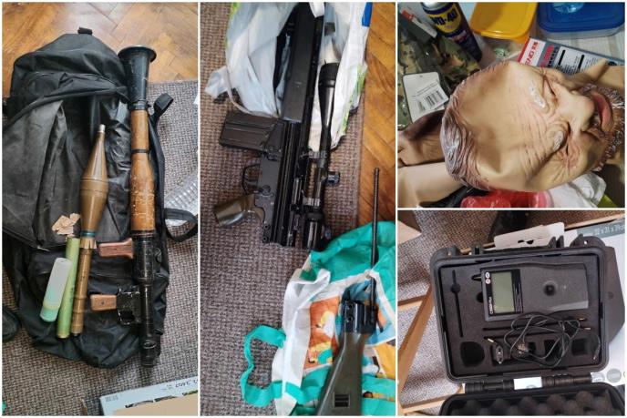 - Zaplenjen je snajper sa optičkim nišanom, ručni raketni bacač, pet granata, dva pištolja sa izbrušenim brojevima, dva kilograma eksploziva, dve silikonske maske, ali i kriptovani telefoni, radio-stanice, špijunske kamere, detektor uređaja za praćenje, rotaciona svetla - otkriva izvor Kurira šta je sve zaplenjeno.