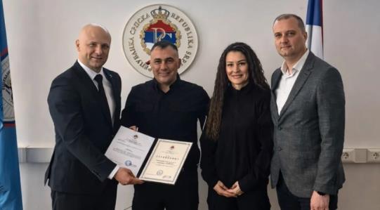 Direktor policije Republike Srpske Siniša Kostrešević danas je Nacionalnom timu za ilegalne laboratorije (NTIL), Službe za borbu protiv droga, Uprave kriminalističke policije, Ministarstva unutrašnjih poslova Republike Srbije, uručio zahvalnicu za izuzetan i značajan doprinos u realizaciji specijalističke obuke i jačanju profesionalne saradnje između policijskih službenika ova dva ministarstva.