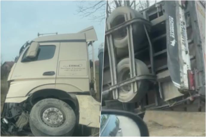 Za sada nije poznato da li u nezgodi ima povređenih, niti kako je došlo do iskliznuća kamiona sa puta.
