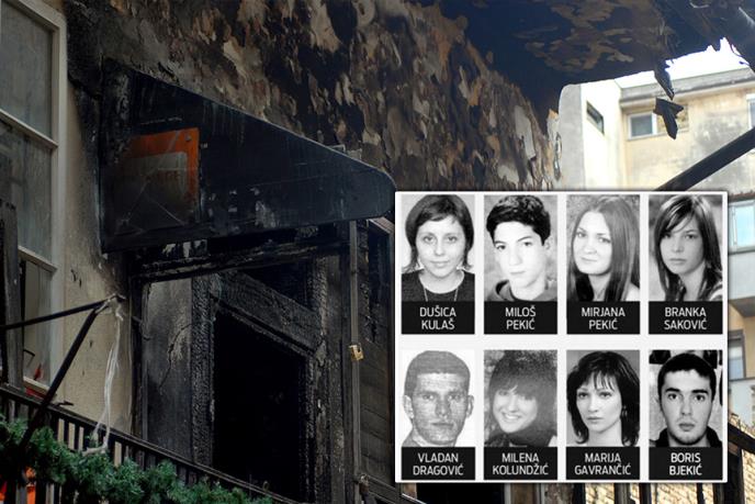 Brat i sestra, Miloš (19) i Mirjana (23) Pekić, Milena Kolundžić (23), Branka Saković (23), Boris Bjekić (23), Dušica Kulaš (23), Marija Gavrančić (23) i Vladan Dragović (22) - imena su tragično nastradalih u požaru koji je izbio 17. februara 2008. Skokom kroz prozor sigurne smrti spasili su se mladić i devojka.