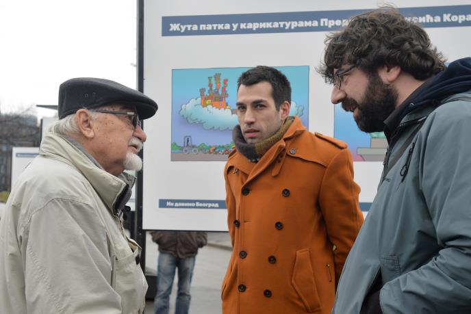 Inicijativa Ne da(vi)mo Beograd počela je danas kampanju za beogradske izbore postavljanjem izložbe karikatura Predraga Koraksića Koraksa ispred Skupštine Grada kojom žele da pokažu ko stoji iza narušavanja javnog interesa i rušenja Hercegovačke ulice, izjavio je aktivista Dobrica Veselinović.