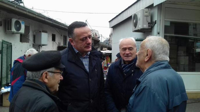 BEOGRAD - Kandidat za gradonačelnika Beograda liste "Ivica Dačić SPS – JS Dragan Marković Palma", Aleksandar Antić, družio se sa penzionerima sa opštine Vračar.