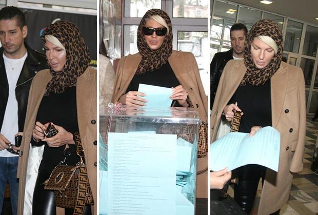 Karleuša je na biralište došla u društvu svog menadžera Zorana Birtaševića, a od objektiva novinara se krila velikim naočarama za sunce i maramom oko glave.