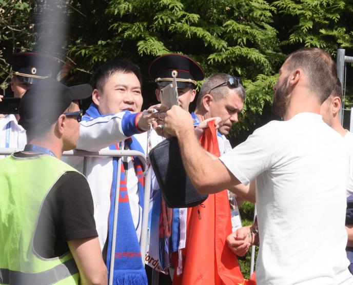 Srpski reprezentativci su strpljivo pozirali simpatičnom navijaču, a Branislav Ivanović je prihvatio poziv za selfi.