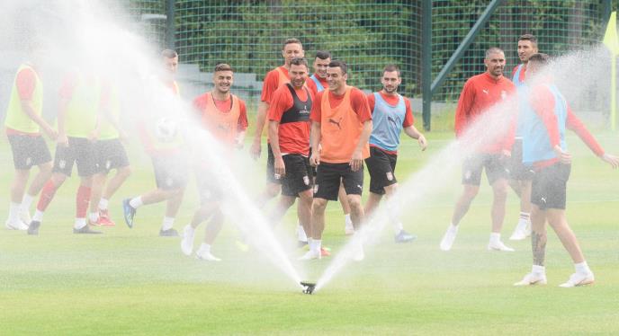 RASHLAĐIVANJE NA TRENINGU ORLOVA: Srpske fudbalere sačekalo posebno osveženje, i čini se da su uživali! (FOTO)