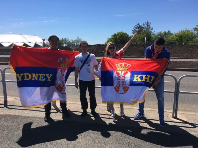 Tako su Srbi koji žive u Australiji, a rodom su iz Knina, danas došli da podrže Orlove. Njih smo sreli ispred stadiona u Samari, sa dve zastave Srbije.
