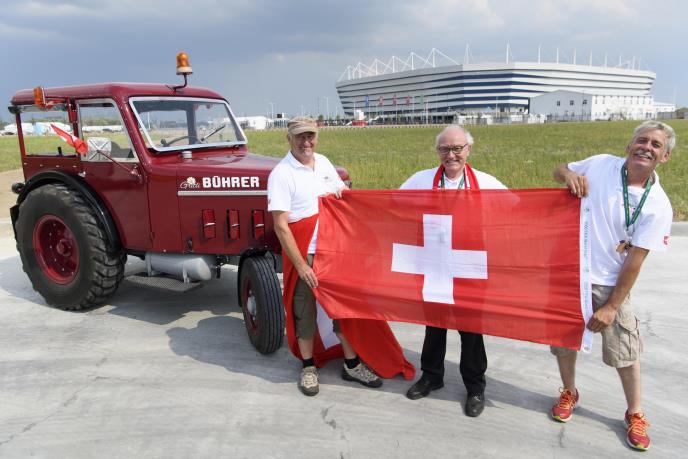 Švajcarac Beat Študer i dvojica prijatelja prešli su skoro 2.000 kilometara na epskom putovanju traktorom po autoputevima i gradskim gužvama i stigli u Kalinjingrad, rusku enklavu na Baltičkom moru, kako bi tu u petak uveče gledali utakmicu Švajcarske protiv Srbije na Svetskom prvenstvu u fudbalu.