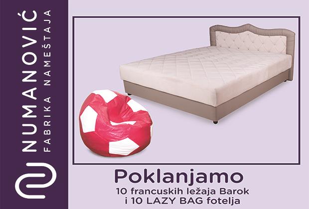 Prvih 10 koji se budu javili dobiće na poklon francuski ležaj BAROK a drugih 10 će dobiti Lezy bag vreću.