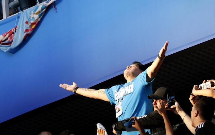 Fudbaleri Argentine igraju odlučujuću utakmicu za prolaz u osminu finala Mundijala u Rusiji, a podršku sa tribina im pruža Dijego Maradona.