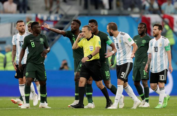 Naime, kasnije heroj Argenitne Markos Roho, mogao je da bude tragičar. Lopta ga je prilikom jednog skoka pogodila u najpre u glavu, a zatim i u ruku. Svi reprezentativci Nigerije su skočili na sudiju Čakira, koji je tada zatražio pomoć VAR tehnologije.