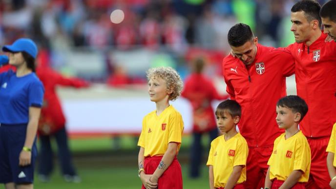 Tako se devetogodišnji Gleb Mihejev, dečak koji je odabran da sa grupom dece na teren izvede reprezentativce, na travnjaku Kalinjingrad arene (gde je igrana utakmica Srbija-Švajcarska), pojavio zajedno sa vezistom Dušanom Tadićem i slušao srpsku himnu, piše Russia beyond.