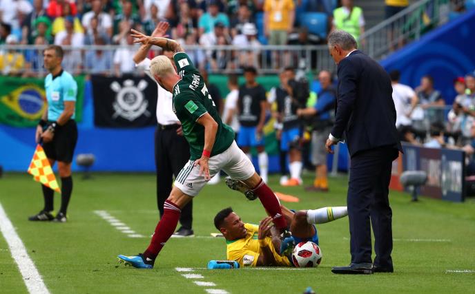 Meksikanac je zaista postupio "prljavo", iskoristio je to što Nejmar sedni na zemlji i zgazio ga na ris, posle čega je Brazilac počeo da zapomaže.
