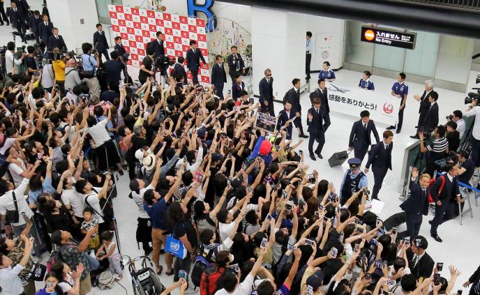 Veliki broj uzbuđenih navijača pozdravili su japanske fudbalere na aerodromu Narita u Tokiju pošto je tim stigao kući nakon što je eliminisan sa svestkog prevenstva u Rusiji.