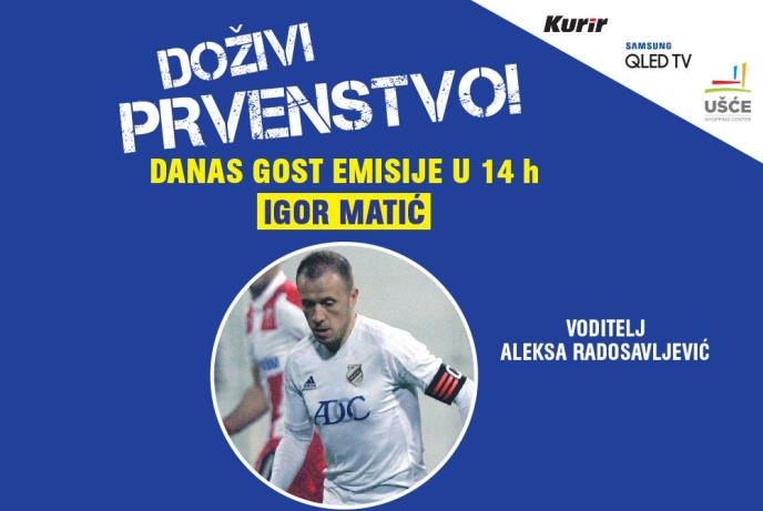Današnji gost emisije "Doživi prvenstvo" u 14 časova biće nekadašnji mladi reprezentativac Srbije i Crne Gore Igor Matić. Matić je sa nacionalnom selekcijom do 21 godine osvojio srebro na Evropskom prvenstvu za mlade fudbalere 2004. godine u Nemačkoj. Iste godine je bio i član nacionalnog tima na Olimpijskim igrama u Atini. Tokom bogate igračke karijere, koju je proveo u Srbiji i Francuskoj, nosio je dresove brojnih klubova. Trenutno radi kao direktor Omladinske škole Čukaričkog, gde pronalazi i stvara nove talente i buduće reprezentativce.