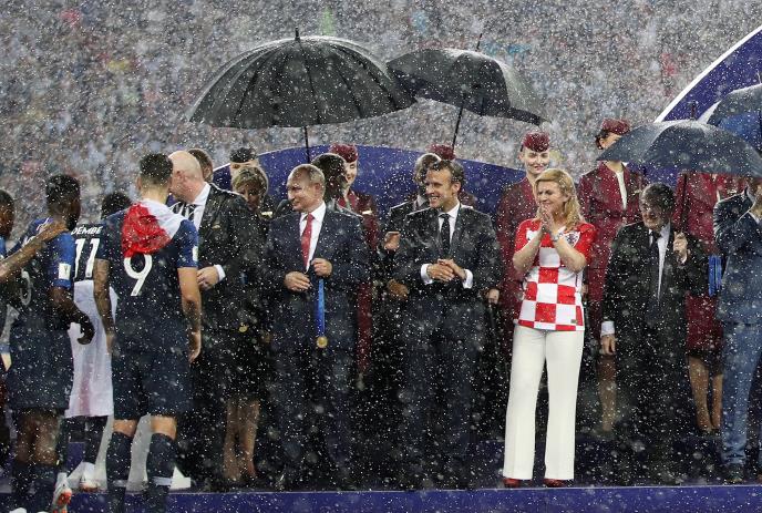 Iznad Vladimira Putina odmah se pojavio kišobran, dok su Makron i Grabar-Kitarović ostali da kisnu.