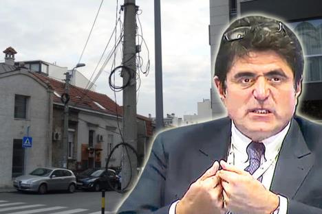The very centre of Belgrade is a case in point that illustrates well the fact that SBB did not care about permits or urban-planning rules in mounting its cabling, and calls into question the legality of the company's network. For example, cables running from one building to the next, as well as those fixed on streetlights, can be seen in Vračar, in the vicinity of the Cathedral Church of Saint Sava.