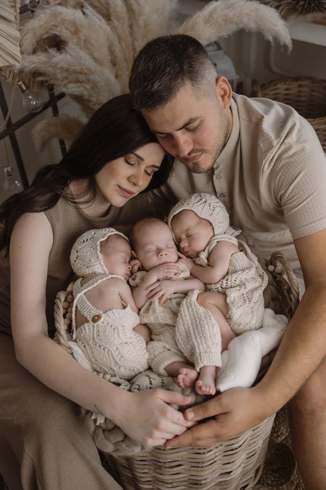 “It was a high-risk pregnancy from the start. My belly started growing by the second or third month, and I found it harder to move. In April, a check-up revealed my cervix had shortened due to the weight, so I had a cervical cerclage. I knew it would be a premature delivery and was aware of the risks. Each morning, I woke up worrying whether everything was okay. I paid attention to every movement, and if there weren’t any, I panicked. I feared everything, especially whether they would be born alive. From the 28th week, I had to stay in hospital. Then, on 1st July, while I was sleeping, two of the babies pushed the third into the birth canal!”