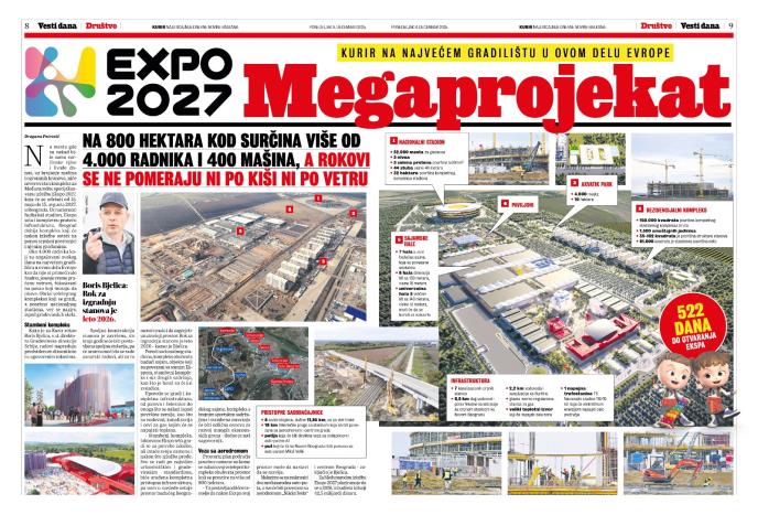 We remind readers that for the International Exhibition Expo 2027 it is planned that 42.5 billion dinars will be allocated from the budget in 2026.
