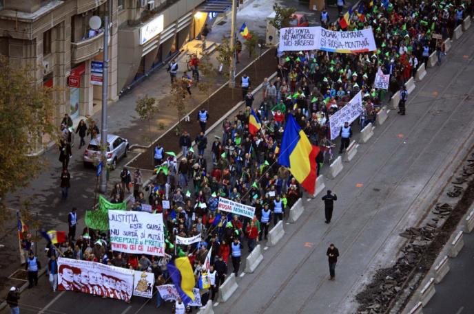 Oko 10.000 ljudi blokiralo je glavni bulevar nastavljajući višenedeljne proteste protiv rudarskog projekta Rozia Montana.