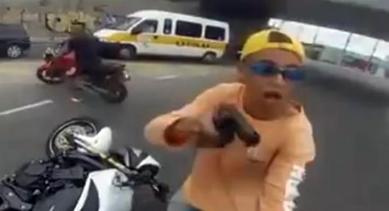 Motociklista se vozio ulicama kada su se odjednom ispred njega pojavili dvojica mladića na motoru. Mladić je bio i više nego iznenađen kada je suvozač uperio pištolj u njega. Napadač mu otima mu motor i pokušava da pobegne.
