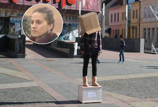 Jelena Topić iz Prijedora, koja je javnost zaintrigirala stojeći nekoliko sati dnevno poput živog kipa na glavnom gradskom trgu u svom gradu, obratila se posle mesec dana sugrađanima pitanjem na transparentu: "Hoće li neko da me oženi?"