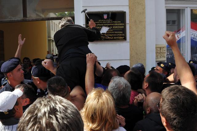 ZAGREB - U Vukovaru je prošle noći ponovo skinuta dvojezična, latinično-ćirlična tabla i to sa zgrade Prekršajnog suda.