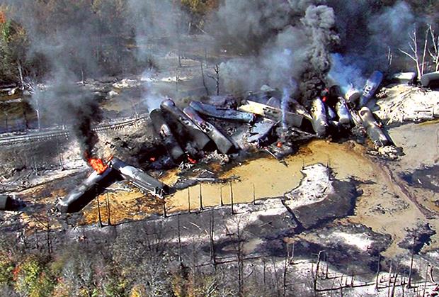 Voz sa 90 vagona, koji je u saveznoj američkoj državi prevozio 10,2 miliona litara sirove nafte, sleteo je sa šina u blizini grada Alisvila, nakon čega je došlo do eksplozije u kojoj se oko 25 vagona prevrnulo. Svaki od prevrnutih kanistera sadržao je 115.000 litara nafte, koja se izlila na okolni teren i zapalila, a požar može da potraje i do 24 sata.