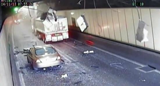 Kamion kome je u vožnji bila podignuta jedna prikolica, zapeo je za gornji deo tunela u Sidneju i prouzrokovao veliku štetu i zastoj u saobraćaju.