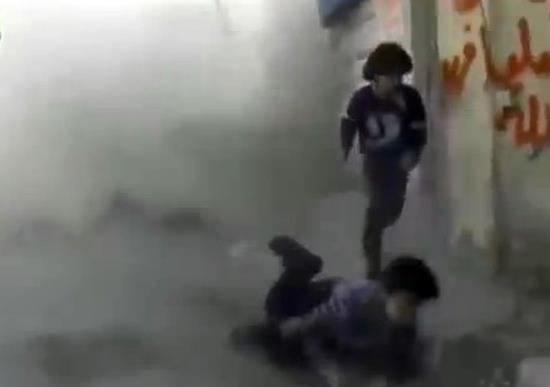 SIRIJA - Nekoliko sirijske dece u Jobaru, predgrađu Damaska, nekim čudom ostala su neprovređena nakon što je samo nekoliko metara dalje eksplodirala granata.