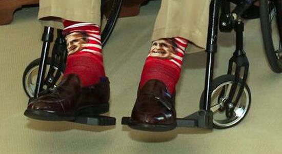 SAD - Na društevnim mrežama pojavila se fotografija na kojoj se vidi predsednik Džordž Buš stariji kako nosi čarape, ni manje ni više, sa svojim likom.