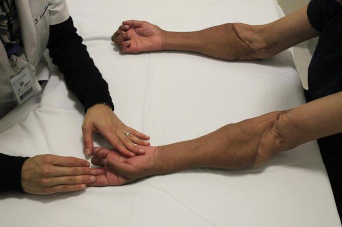 Ovaj čovek (53) ruke je izgubio u jakom strujnom udaru koji mu je do lakata spržio ne samo nerve i meso nego i kosti ruku. Gabijel je već mesec dana posle neverovatne operacije koja je trajala čak 17 sati počeo da oseća ruke, ali sada konačno može njima i da se služi.