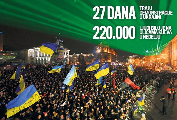 Otkad je Ukrajina odustala od potpisivanja sporazuma o pristupanju Evropskoj uniji, zapala je u veliku krizu i stanje haosa, izazvano četvoronedeljnim demonstracijama proevropski orijentisanih građana, ali i pristalica vlade premijera Mikole Azarova i predsednika Viktora Janukoviča.