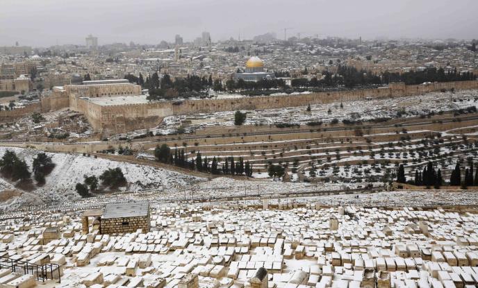 Sa Gore pogled najpre pada na jevrejsko groblje. Jevreji veruju da će mesija doći iz pustinje, popeće se na Maslinovu goru, spustiti se u Kedronsku dolinu i da će u Božju kuću ući kroz zlatna vrata starog grada (nekada su vodila do Solomonovog hrama, ali su ih muslimani zazidali). Kada mesija stupi u hram, doći će do obnove sveta, koji će postati idealno mesto, onako kako je Bog zamislio.