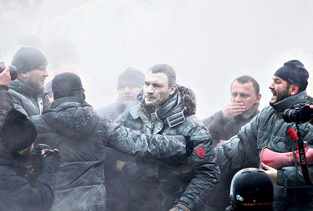 Policija je upotrebila šok bombe, a jedan od opozicionih lidera, poznati bokser Vitalij Kličko pokušao je da zaustavi demonstrante koji su pohrlili u napad na policajce