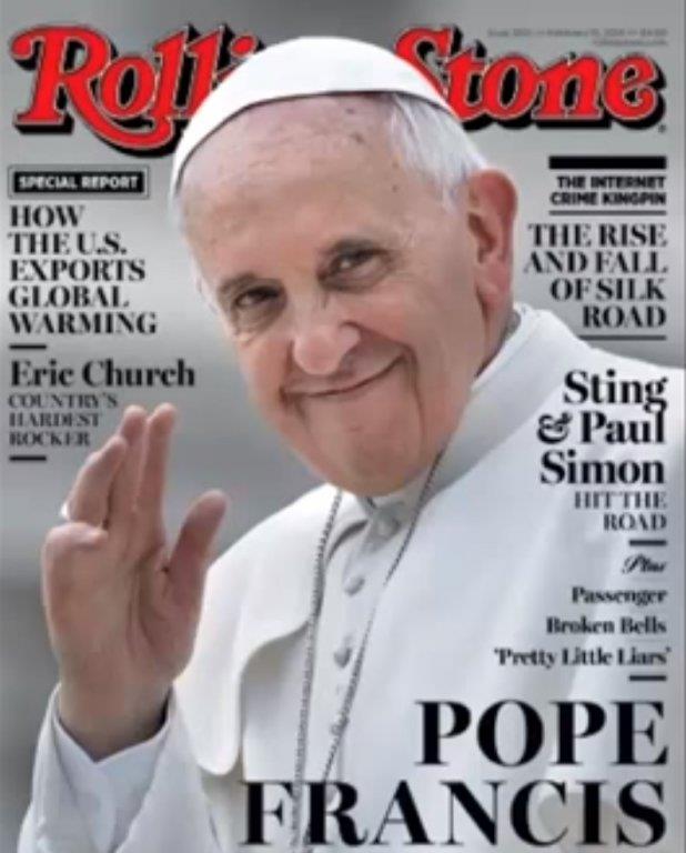 "Rolingstoun" prenosi tipičnu fotografiju pape, koji se smeška i maše, navodeći da je to "jedan popularni papa" i da se pre samo mesec dana poglavar Rimokatoličke crkve smešio s naslovne strane magazima "Tajm", kao ličnost godine 2013. po izboru tog lista.