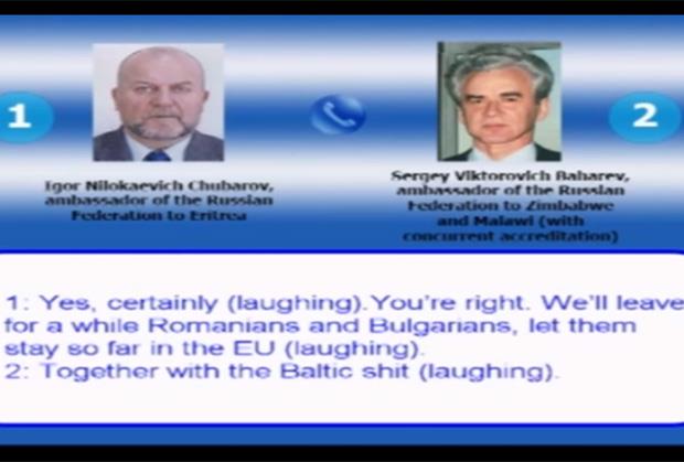 Britanski Gardijan objavio je na svom sajtu audio snimak privatnog telefonskog razgovora ruskih ambasadora u Eritreji Igora Čubarova i Zimbabveu i Malaviju Sergeja Bakareva tokom kojeg su se njih dvojica slatko ismejali strahovanju Zapada od ruskih osvajačkih pohoda.