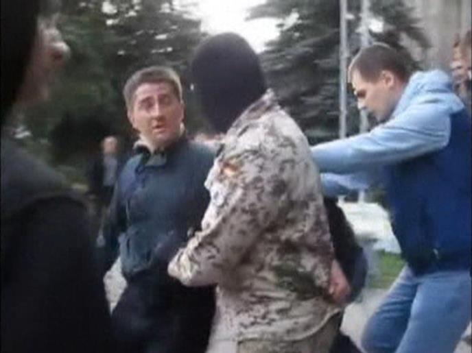 Snimak lokalnog sajta gorlovka.ua od četvrtka prikazuje nekoliko muškaraca među kojima je bilo i maskiranih osoba, kako grubo guraju Ribaka ispred skupštine Horlivka, prenela je agencija Rojters. Ribak je pokušao da ukloni zastavu separatističke Republike Donjeck, navedeno je na lokalnom sajtu.