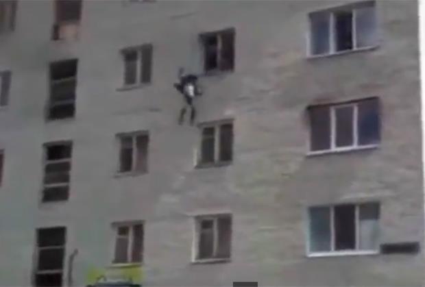 (VIDEO) SRCE DA TI STANE: Majka bacila ćerke sa 4. sprata u plamenu, komšije ih spasle čaršavima! Foto: Printscreen
