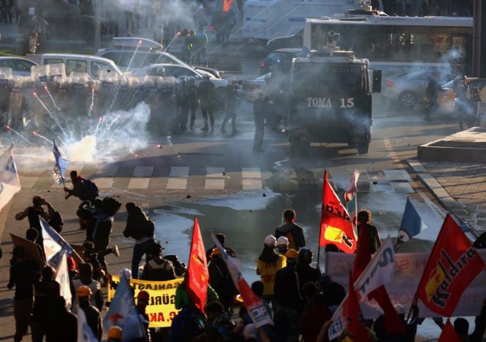 Policija sa centralnog Trga Kizilaj rasteruje oko 500 ljudi, koji su želeli da se okupe na mestu gde je pre tačno godinu dana policija ubila 26-godišnjeg demonstranta Etema Sarisuluka, javila je agencija AFP.