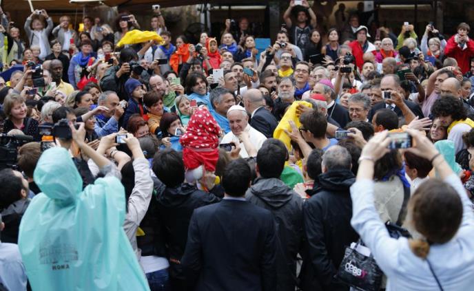 Papa Franja je došao pešice u zajednicu a zatim prvo ušao u crkvu u kojoj je slušao svedočanstva članova Svetog Eđidija. Potom je otišao u sedište zajednice, koja broji 50.000 članova u 70 zemalja