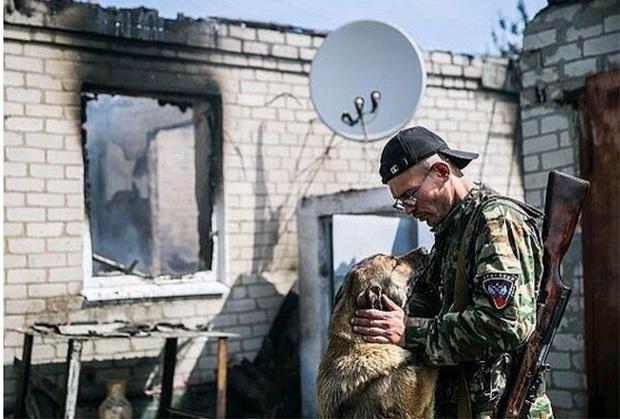 Pas je ranjen u nekom od brojnih artiljerijskih napada ukrajinske vojske, niko ne brine o njemu osim što mu pokoji pripadnik samoodbrane ili neko od komšija dobaci tu i tamo nešto hrane, ali on se svima raduje i verno i tvrdo čeka svoju porodicu na zgarištu.