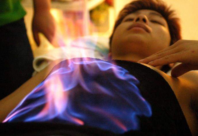 Kineski iscelitelji navode da je već odavno poznata metoda stimulisanja akupunkturnih tačaka toplotom. "Terapija vatrom je nadmašila kinesku i zapadnu medicinu", izjavio je terapeut Džang koji obučava studente u svom stanu u Pekingu.