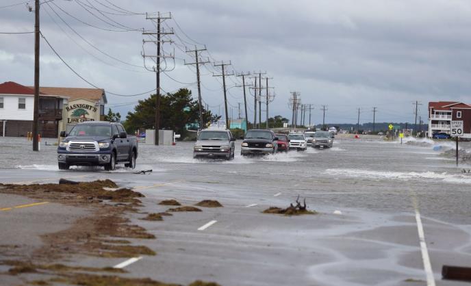 Ostrva Outer Banks pogođena su jakim vetrovima, uzburkanim morem i putevima prepunim peska koji je oluja nanela, a evakuacija je otpočela u sredu uveče.