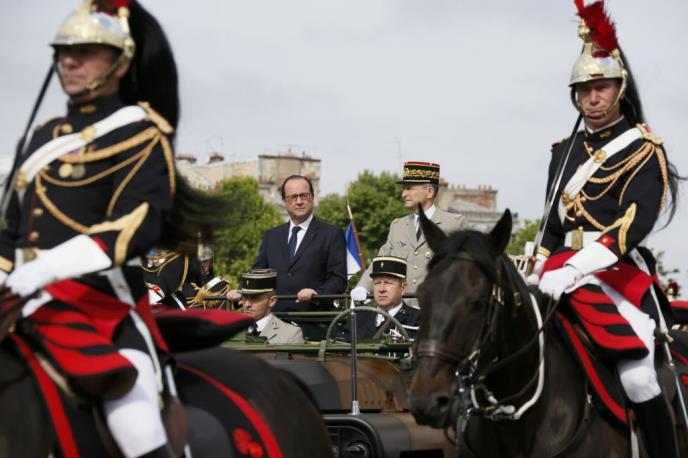 PARIZ - Francuski predsednik Fransoa Oland danas je izviždan dok je u otvorenom automobilu pozdravljao vojsku na Jelisejskim poljima povodom Dana Bastilje.