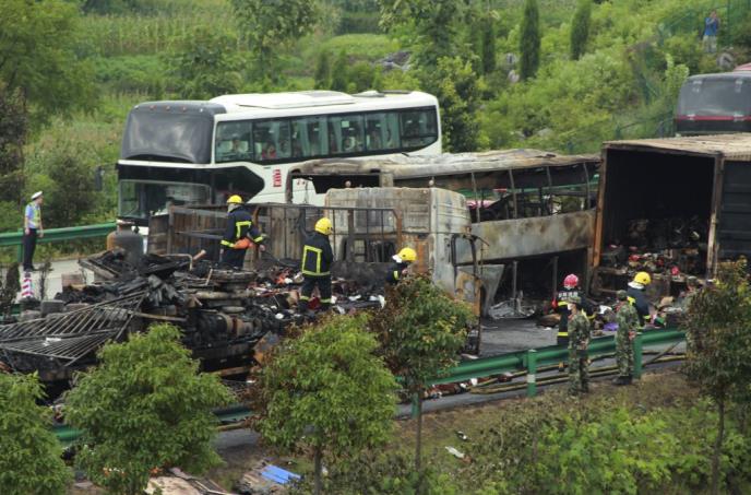 PEKING - Najmanje 38 osoba je poginulo, a pet povređeno, kada se kombi koji je prevozio zapaljivu tečnost sudario sa autobusom na autoputu u kineskoj provinciji Hunan.